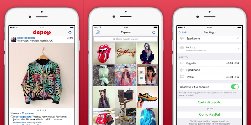 - Depop: questa app italiana e ormai diffusa in tutto il mondo e particolarmente apprezzata dagli utenti per la sua semplicità: infatti la grafica è immediata, simile a quella di instagram. Basta iscriversi creando un profilo personale, scattare delle foto al capo di cui vi volete liberare, scrivere la descrizione, scegliere il prezzo e condividere su tutti i social per aumentare la visibilità. Per acquistare un prodotto dobbiamo semplicemente aprire la foto del capo che ci interessa e cliccare il tasto compra; i pagamenti sono protetti ed effettuati tramite PayPal. C’è anche l’opzione per barattare oggetti di uguale importo.